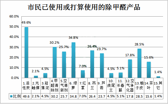 ▲据2017年3月深圳市消委会进行的除甲醛产品随机调查访问发现,市民在选择除甲醛产品上,甲醛清除剂的占比达到30.2%。